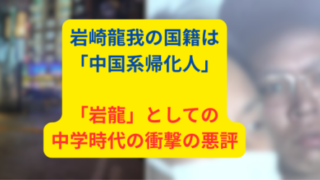 事件・事故・火事 岩崎 龍我の国籍は「中国系帰化人」「岩龍」としての中学時代の衝撃の悪評