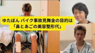 事件・事故・火事 ゆたぼん バイク事故見舞金の目的は「鼻とあごの美容整形代」 Youtuberの高校生 ゆたぼんさんが、12月6日朝、ボクシングクラブからバイクで帰宅中に、対向車線からはみ出してきた車と衝突し入院したというニュースが流れました。予期せぬもらい事故に、当初は心配や同情が多く集まっていましたが、ゆたぼんさ... 2025.12.10 事件・事故・火事