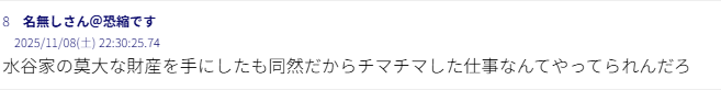 水谷家の莫大な財産を手にしたも同然だからチマチマした仕事なんてやってられんだろ