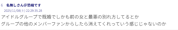 アイドルグループで既婚でしかも前の女と最悪の別れ方してるとか