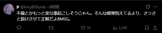 そんな爆弾抱えてるより、さっさと抜けさせて正解だよBMSG。