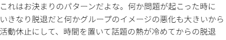 活動休止にして、時間を置いて話題の熱が冷めてからの脱退