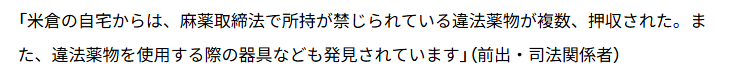 その衝撃の内容とは、大人気ドラマ「Doctor-X 外科医 大門未知子」などで主演を務め、国民的な人気女優の米倉涼子さんが、麻薬取締法違反容疑で家宅捜索され、違法薬物が押収されたいう内容だった。